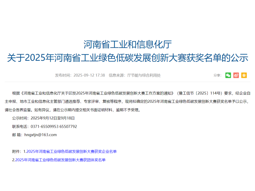 近日,2025年河南省工業(yè)綠色低碳發(fā)展創(chuàng)新大賽圓滿落幕,公司憑借在綠色低碳領(lǐng)域的卓越創(chuàng)新和扎實(shí)服務(wù),榮獲本次大賽二等獎(jiǎng),是7個(gè)二等獎(jiǎng)中唯一獲獎(jiǎng)的省外機(jī)構(gòu)。這一榮譽(yù)不僅體現(xiàn)了公司在推動(dòng)工業(yè)綠色轉(zhuǎn)型方面的技術(shù)...